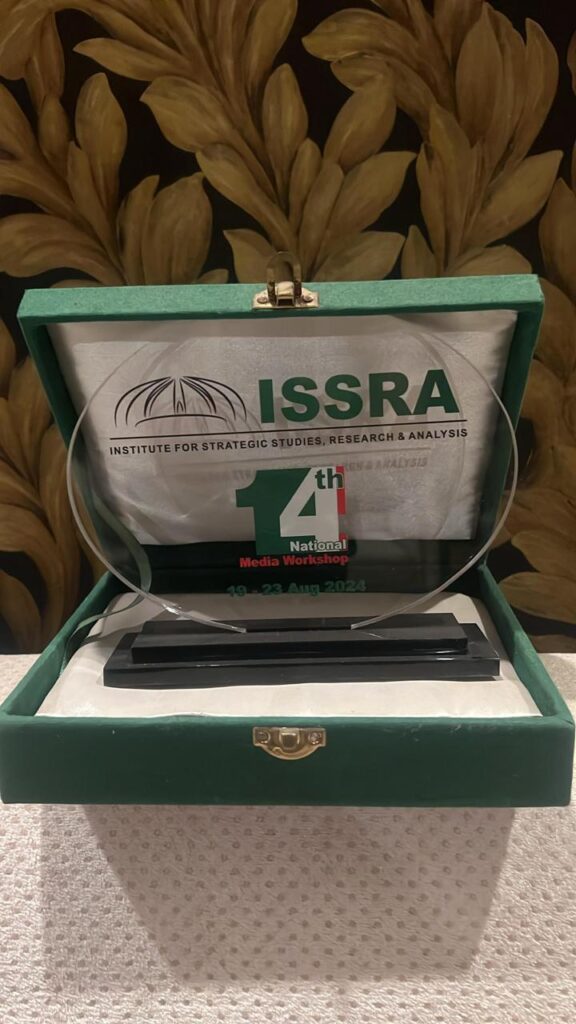 This group photograph captures the participants and facilitators of the 14th National Media Workshop (14th NMW) held at the Institute for Strategic Studies, Research & Analysis (ISSRA), National Defence University, Islamabad, from 19–23 August 2024. The photo reflects a vibrant exchange of ideas, learning, and collaboration among media professionals, scholars, and experts, marking the successful conclusion of an enriching and inspiring workshop experience.